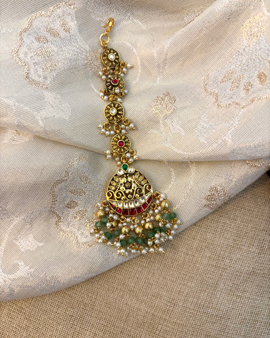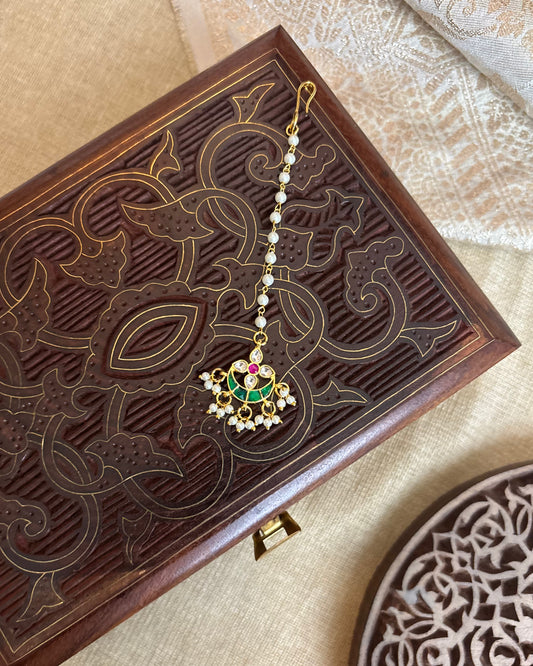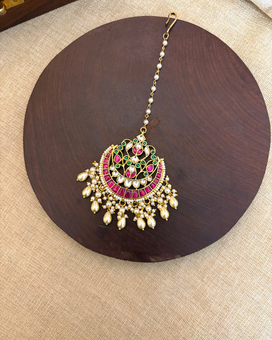 Jadau Kundan Maang Tikka with Pearl Chain | MT089
