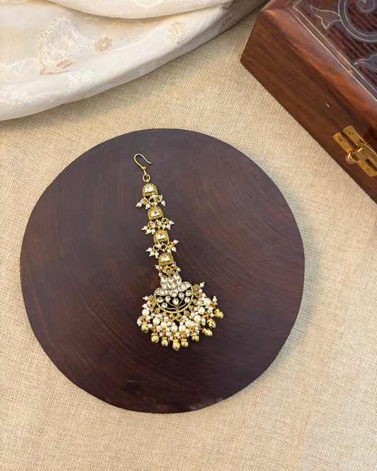 White Lotus Gold-Plated Jadau Kundan Traditional Maang Tikka | MT096