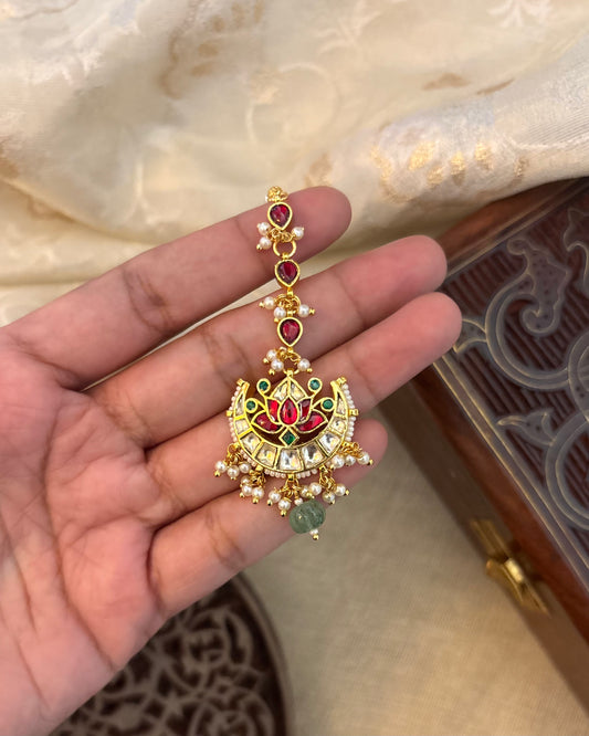 Multicolor Lotus Minimal Jadau Kundan Maang Tikka | MT112