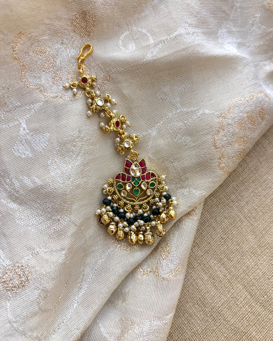 Multicolor Gold-Plated Jadau Kundan Traditional Maang Tikka | MT126