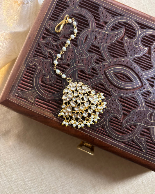 Jadau Kundan Maang Tikka with Pearl Chain | MT124