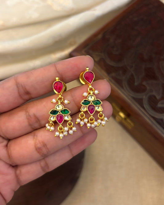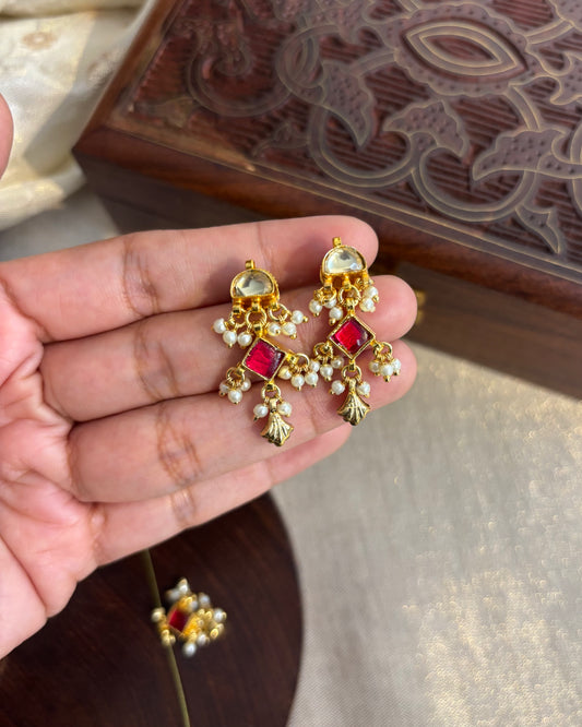 Minimal Pearl Necklace with Pachi Kundan Pendant & Matching Earrings | NC100