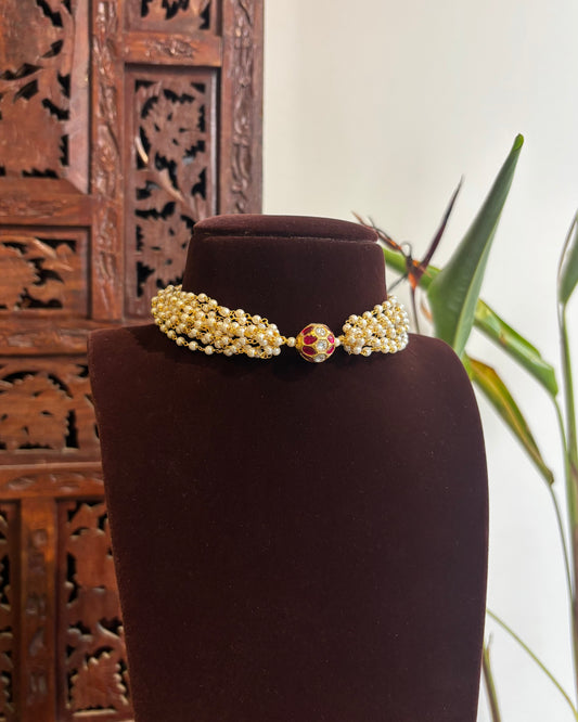 Classic Pearl Chand Choker Set | Crescent Motif with Matching Earrings| NC233