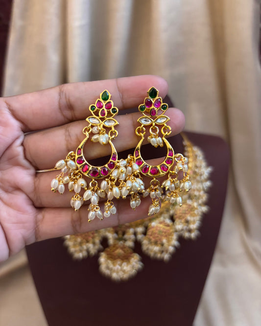 Minimal Pearl Necklace with Pachi Kundan Pendant & Matching Earrings | NC144