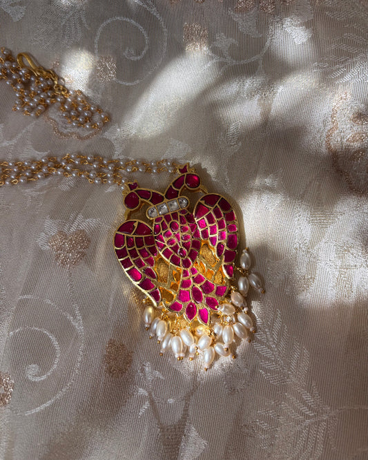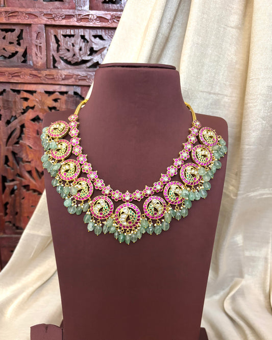Peacock Jadau Kundan Pendant with Mint Green Beads & Pearl Mala | NC067