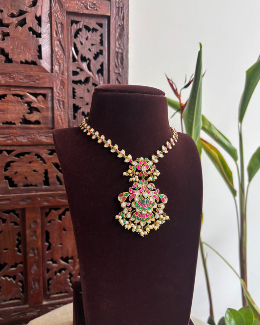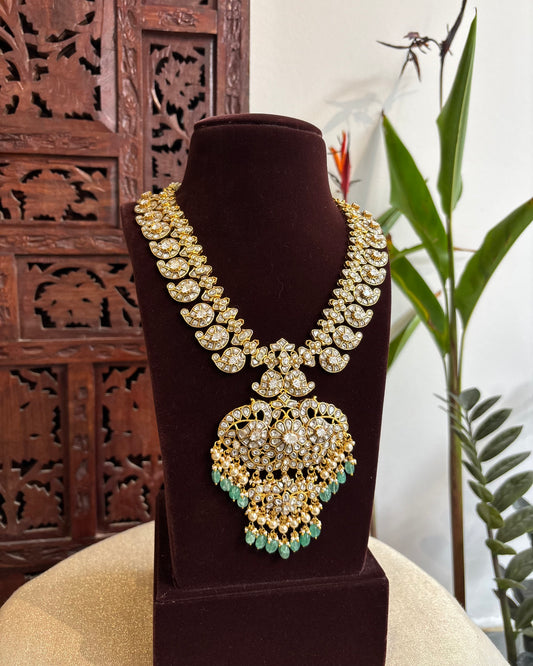 Jadau Kundan Mango Haram Necklace with Peacock Centrepiece | NC211