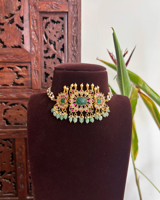 The Royal Peacock Edit: Jadau Kundan Matte Finish Choker | NC243