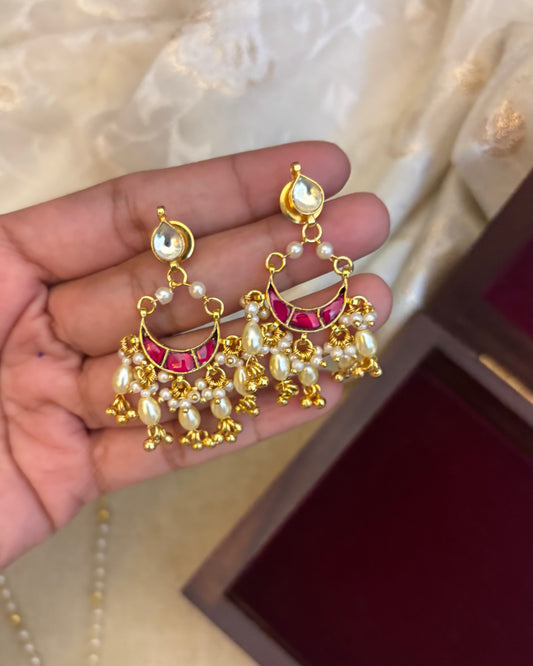 Minimal Pearl Necklace with Pachi Kundan Pendant & Matching Earrings | NC145