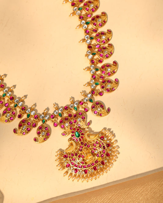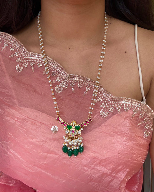 Peacock Guttapusalu Necklace Set With Matching Earrings