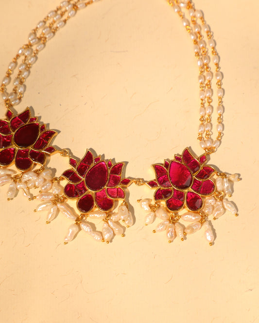 Lotus-Inspired Jadau Kundan Pearl Choker – From the Nirvya Collection | NC040