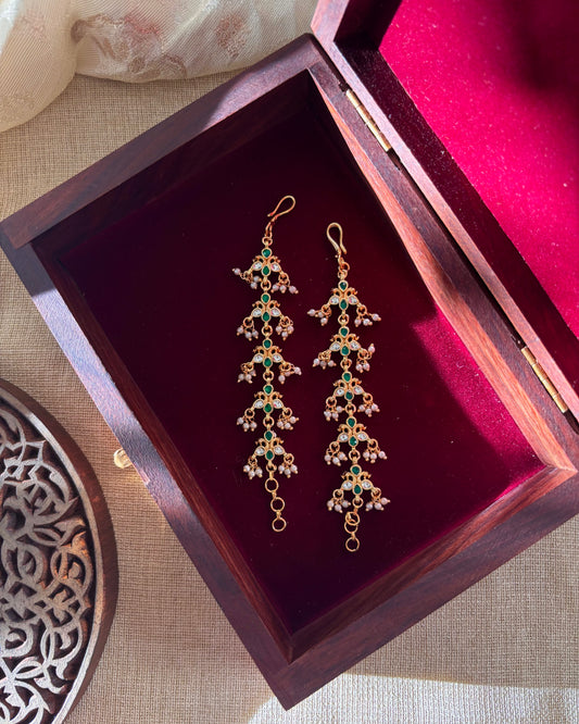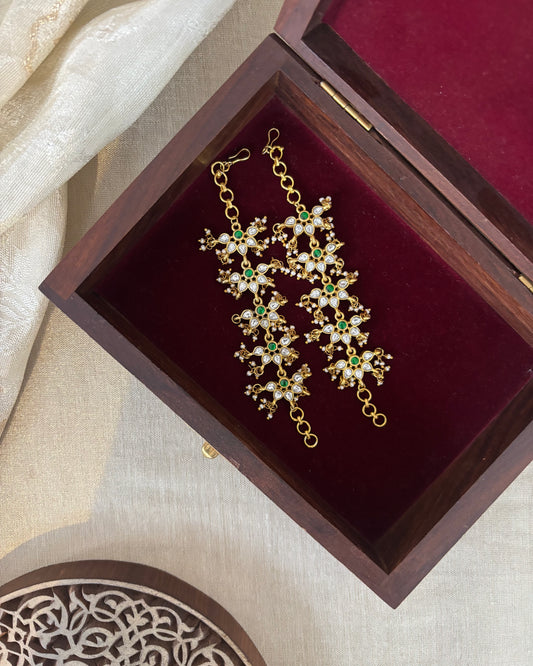 Floral Jadau Kundan Straight Ear Chain – Green & White | EC039