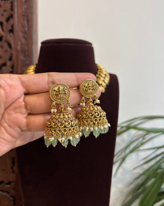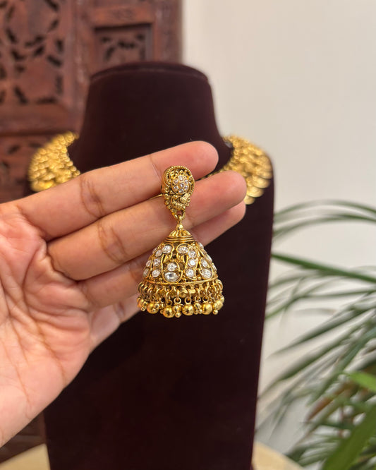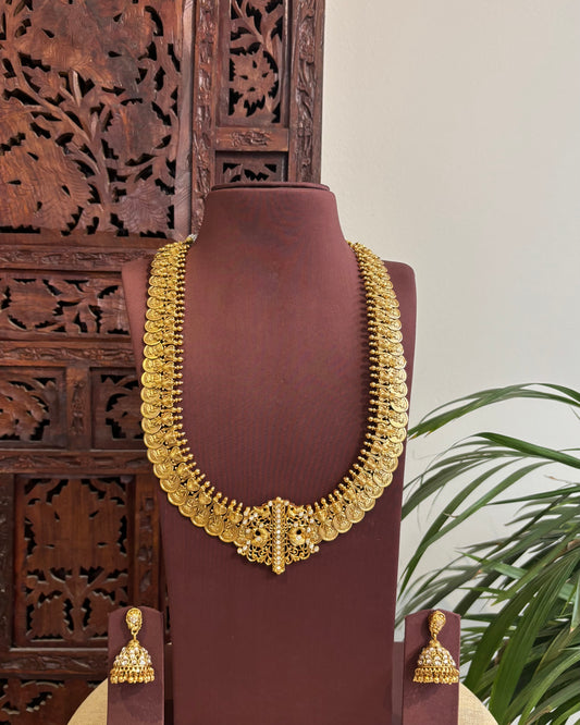 Lakshmi Antique Peacock Kaasu Haram with Kundan Detailing – Bridal Temple Jewellery | NC363