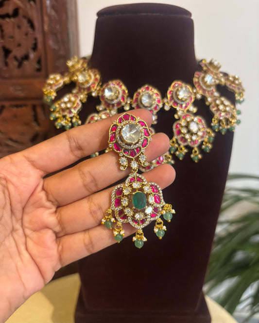 Floral Multicolor Mossanite Necklace Set with Earrings | NC386