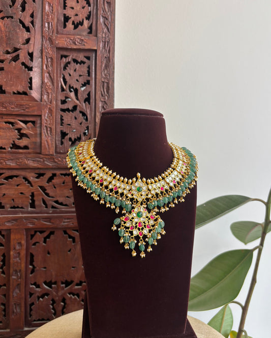 Bridal Jadau Kundan Floral Necklace with Strawberry Beads | NC364