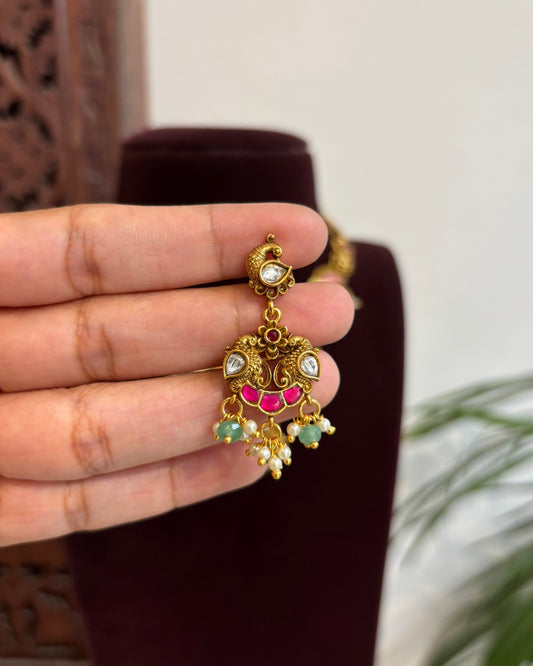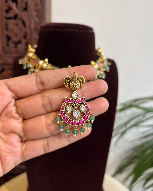Jadau Kundan Antique Finish Peacock Floral Necklace Set | NC385