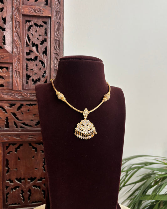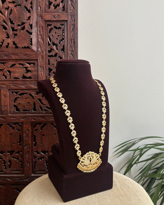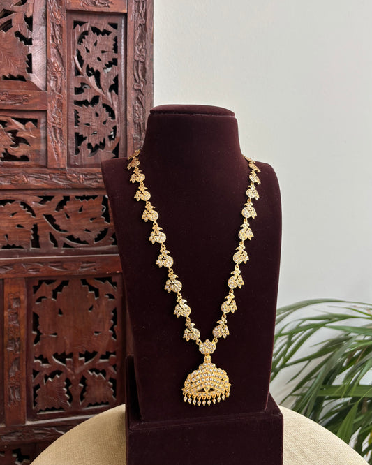 Peacock Motif Impon Pendant Attigai Necklace – White | NC394