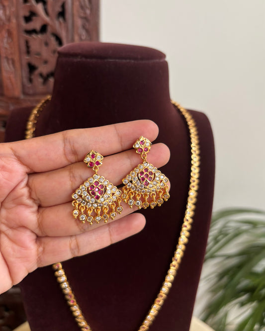 Ruby & White Kundan Necklace – Contemporary Teardrop Design with Jhumkas | NC362