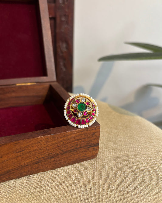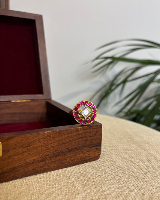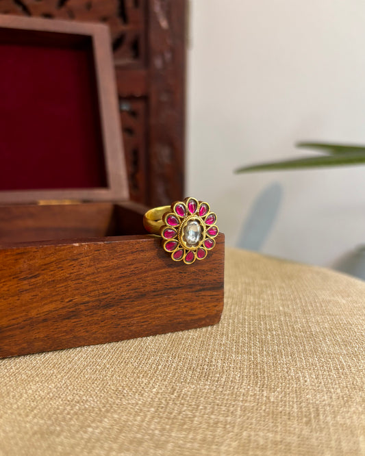 Jadau Kundan Adjustable Rings| Ruby & White | RG005