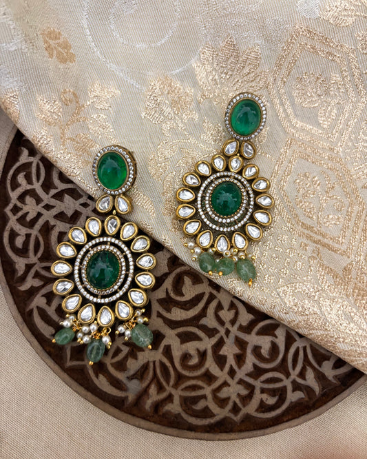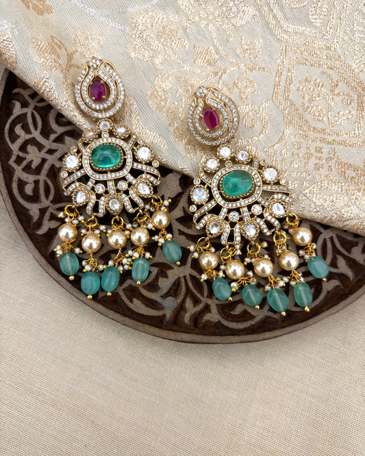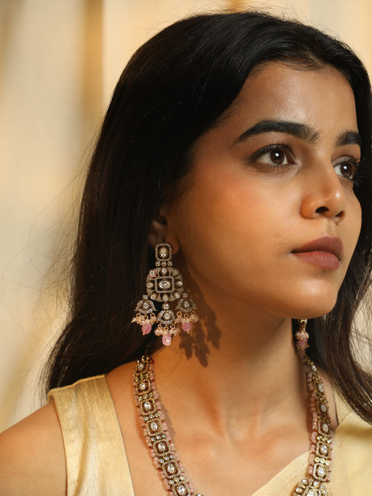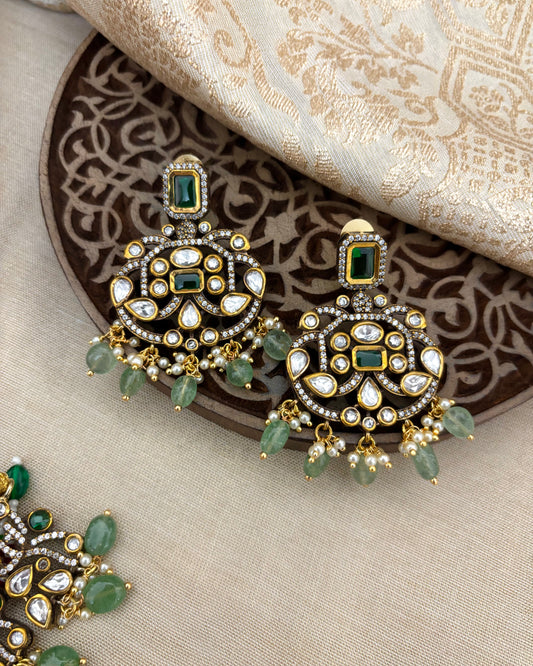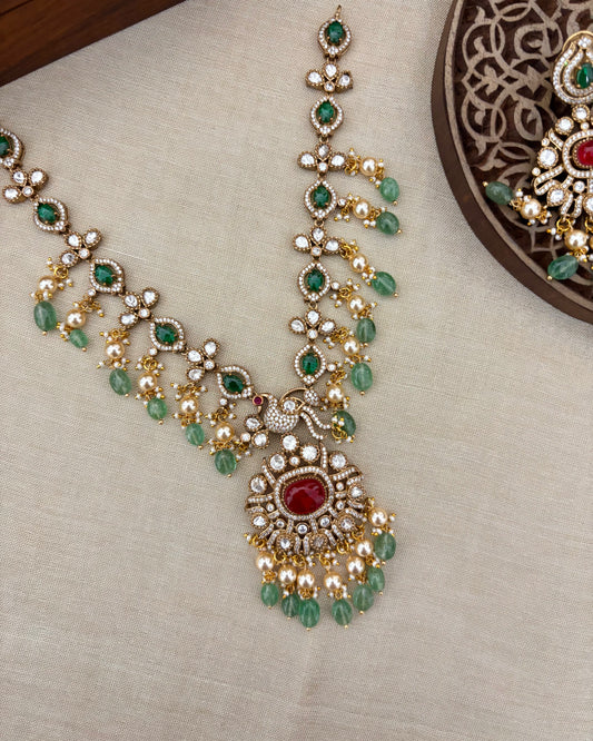 Peacock Kanti Necklace Set with Moissanite Drop Accents and Matching Earrings | NC109