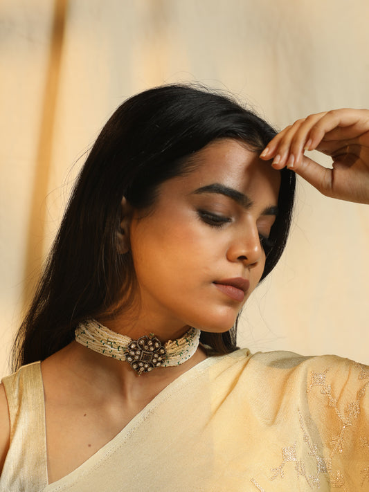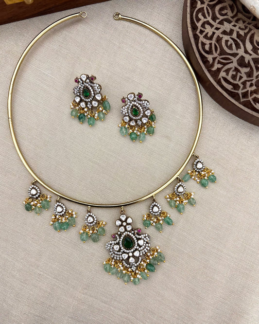 Floral Moissanite Bridal Choker with Earrings – Statement Jewellery | NC117