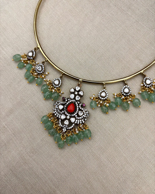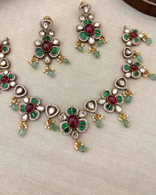Floral Multicolor Mossanite Necklace Set with Earrings | NC119