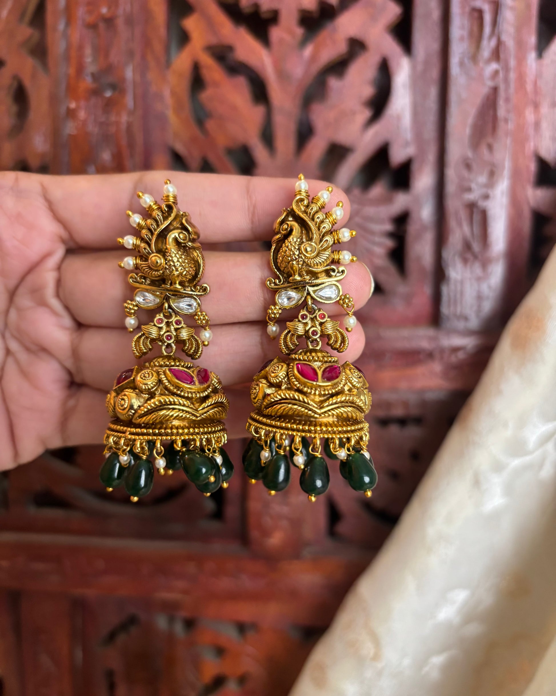 Antique Finish Peacock Jhumkas | ER088