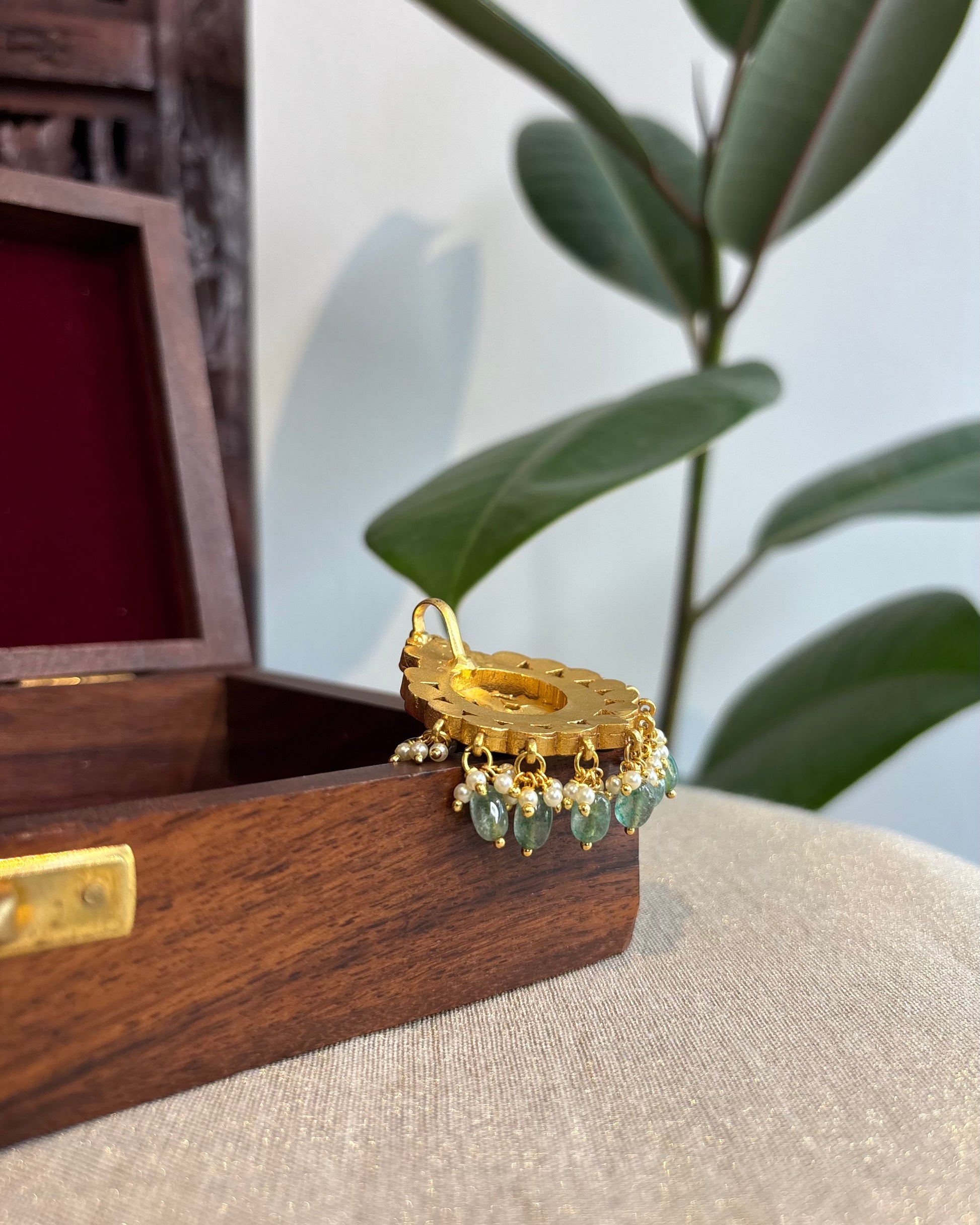 Designed to be versatile, it can be styled as a necklace pendant or used as a hair pendant along braids or traditional hairstyles—making it a perfect addition to your bridal or festive collection.