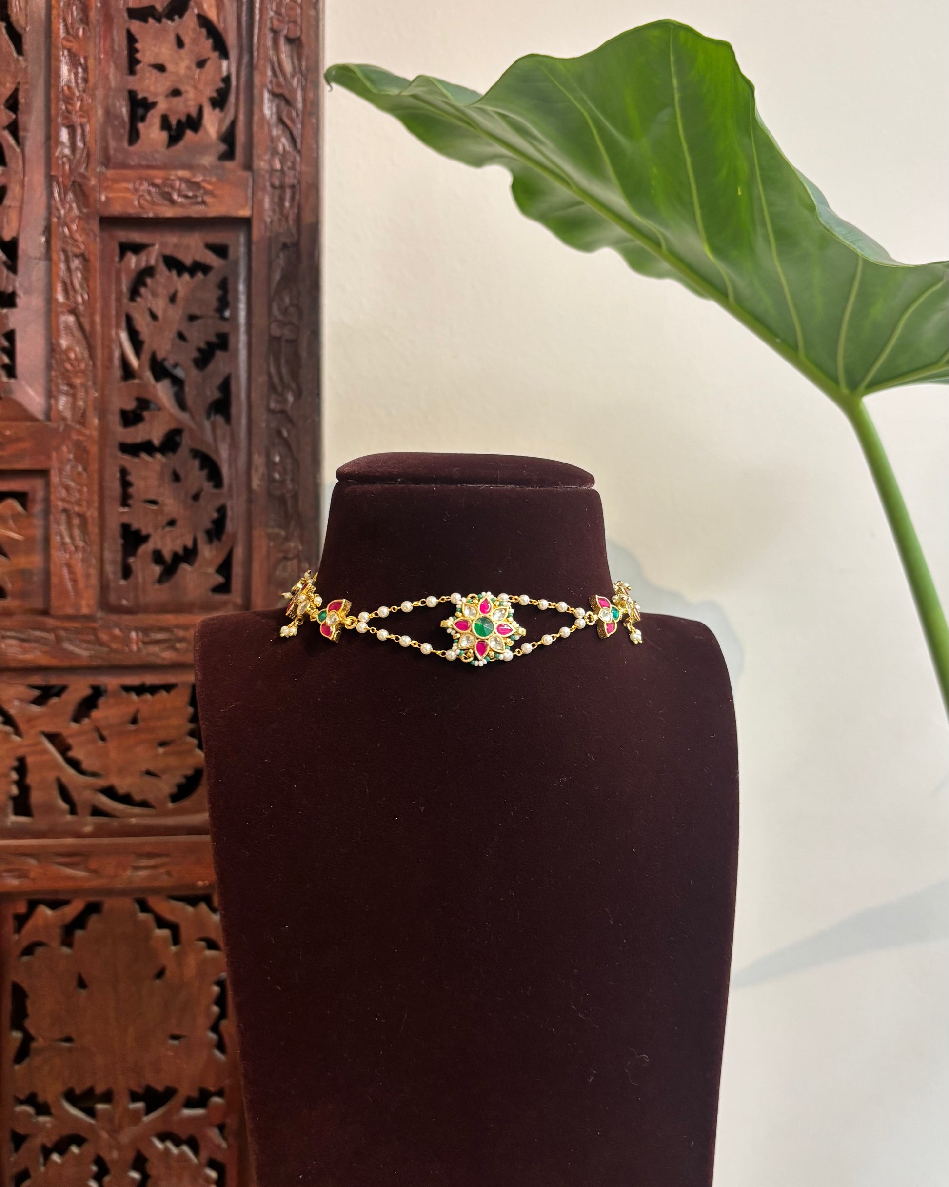 The Lotus Floral Statement Choker is a perfect blend of tradition and bold elegance. Featuring a striking floral centrepiece paired with a chain adorned in lotus motifs, this choker stands out as a unique statement while staying deeply rooted in heritage design.