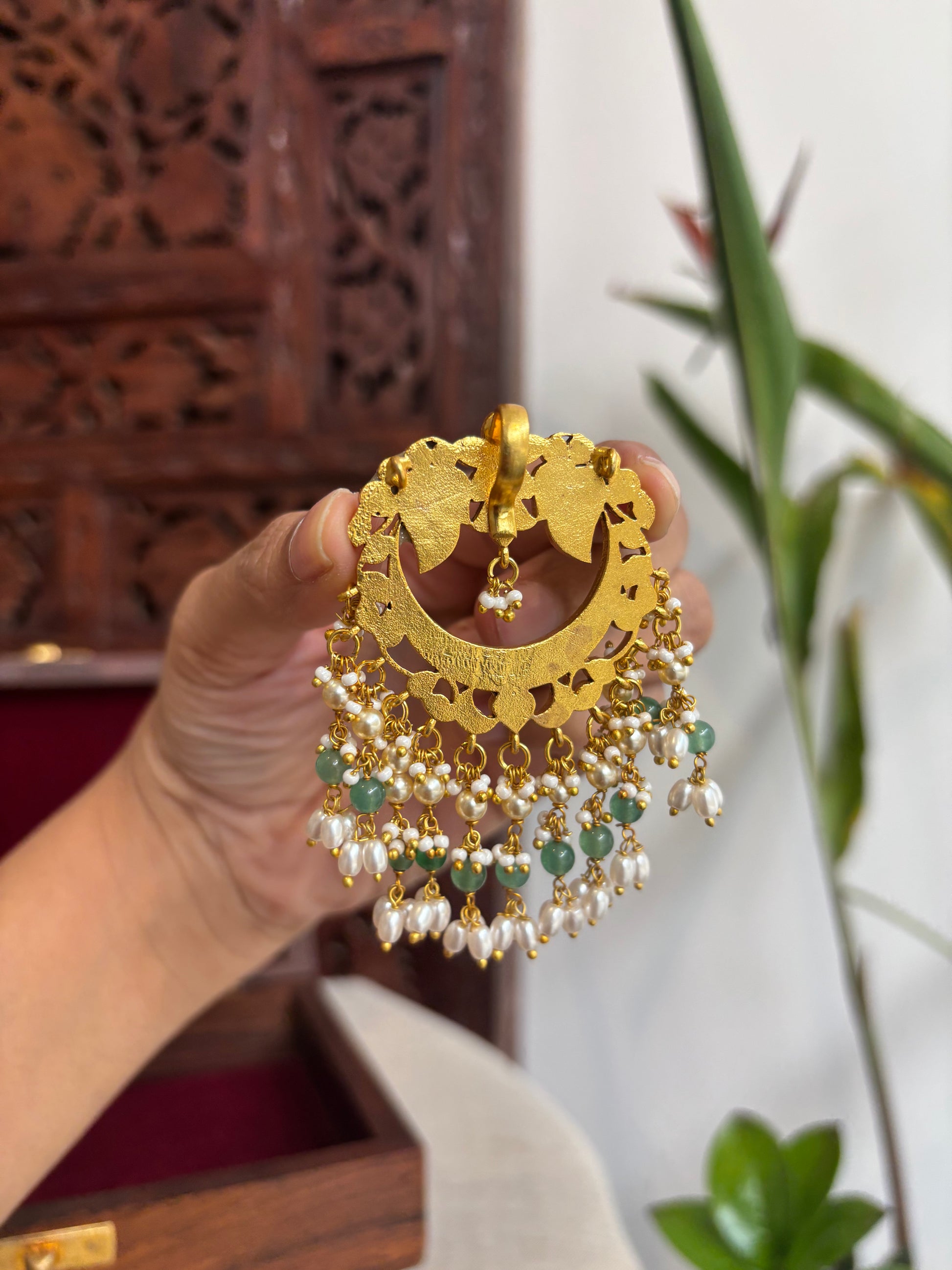 Accented with green bead hangings, this pendant adds a touch of vibrant charm and ethnic finesse. It offers versatility for various occasions — from festive events to wedding functions.