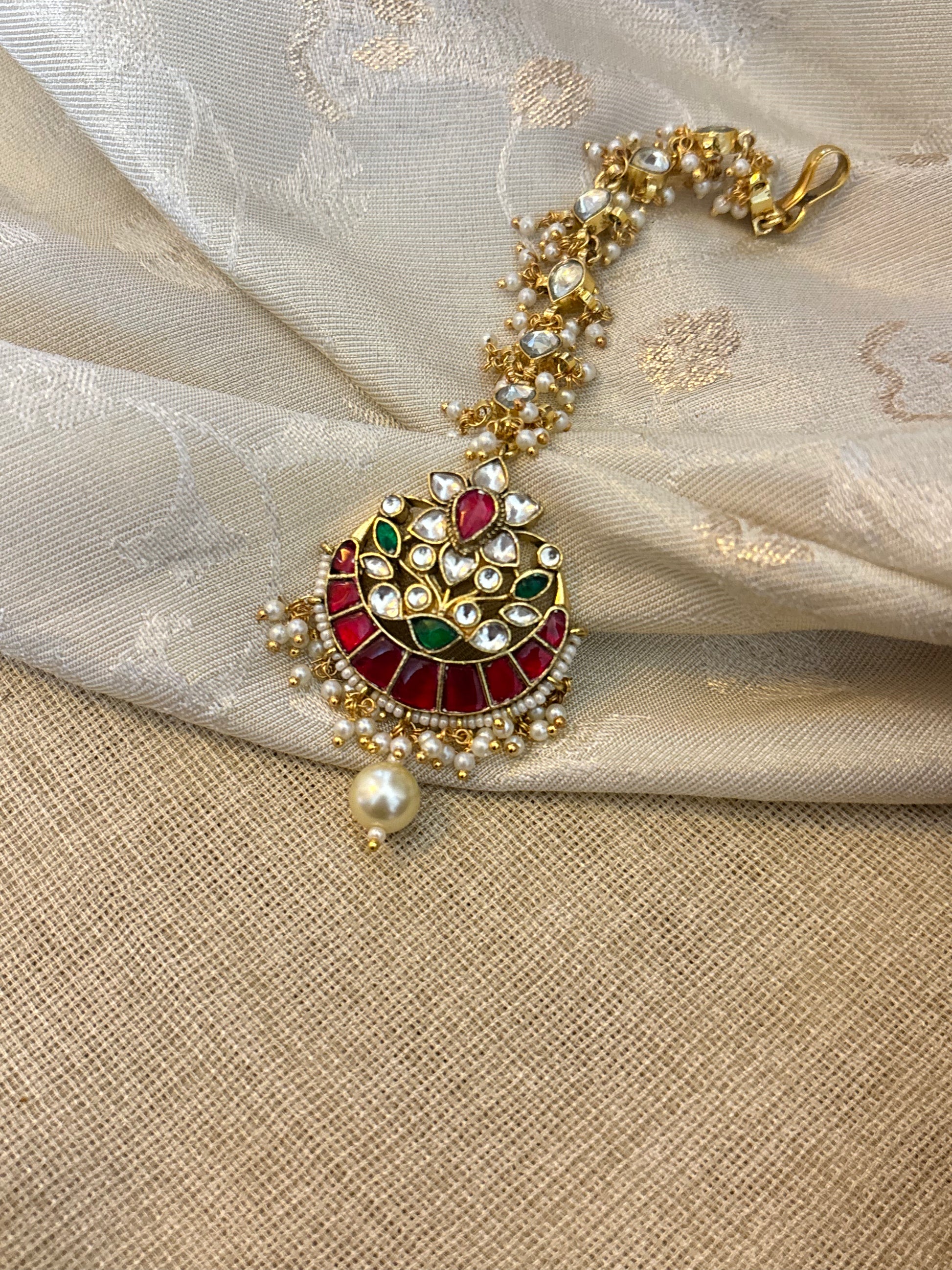 Multicolor Gold-Plated Jadau Kundan Traditional Maang Tikka | MT097