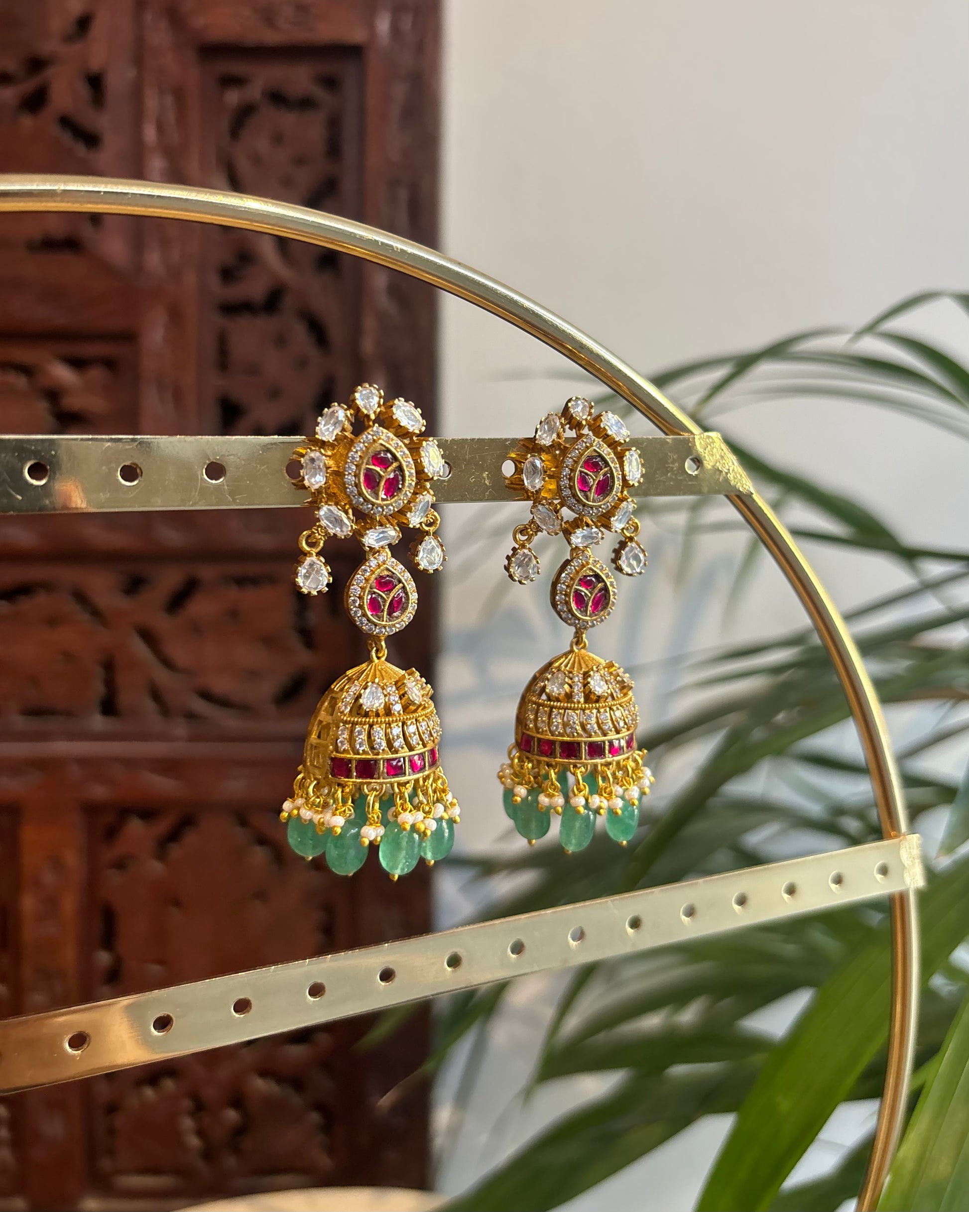 Perfect for weddings, festive occasions, and special celebrations, these earrings blend contemporary styling with refined craftsmanship. The vibrant ruby tones and brilliant finish make them a standout accessory, effortlessly enhancing ethnic, fusion, or modern ensembles with sophistication and charm.