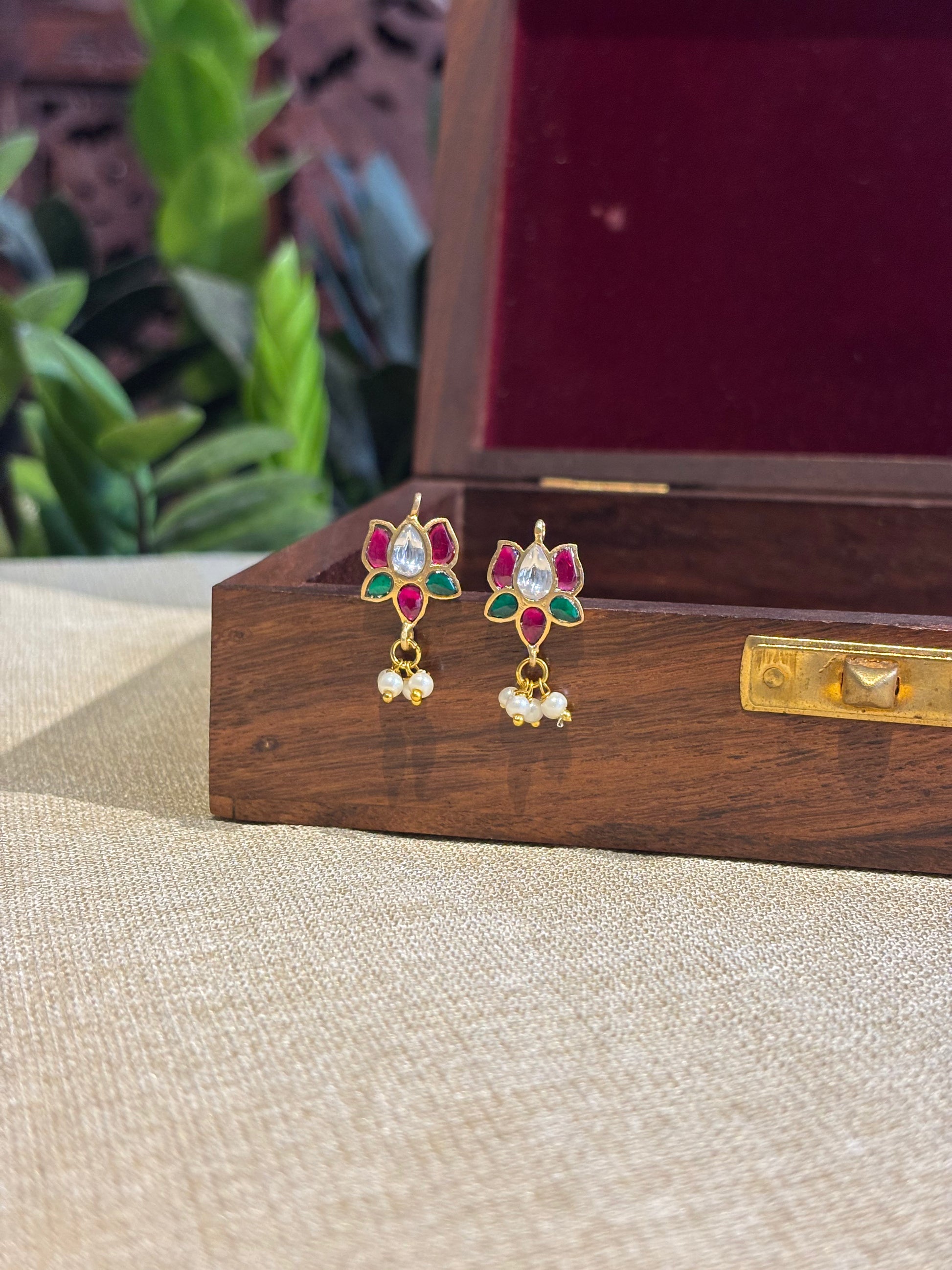 Handcrafted Multicolor Lotus Bugadi – Jadau Kundan Ear Accessory | ER138