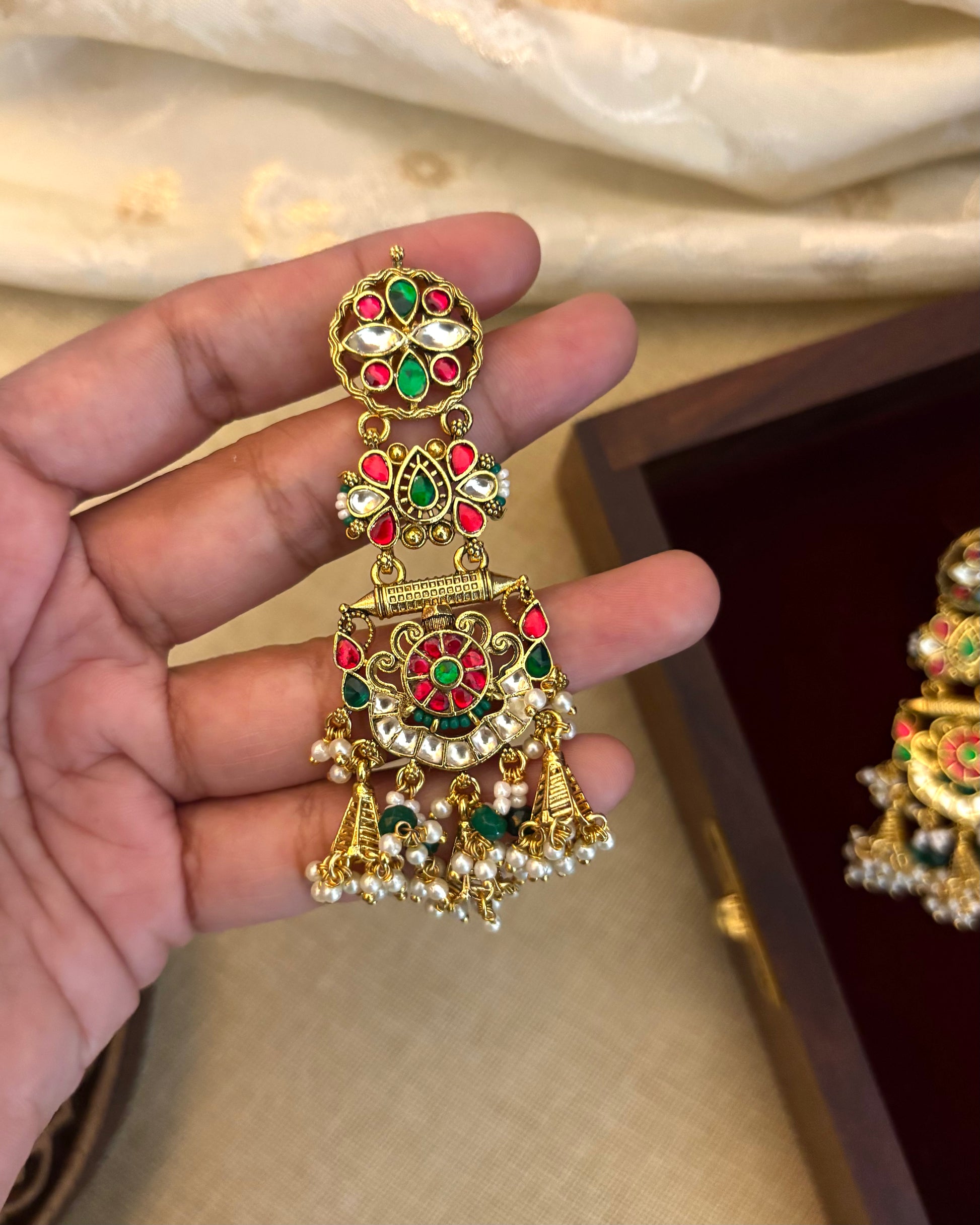 Timeless and elegant, these Antique Finish Kundan Earrings embody the beauty of traditional craftsmanship. Designed with intricate kundan stonework and finished in a rich antique polish, they exude heritage charm while remaining versatile for any occasion.