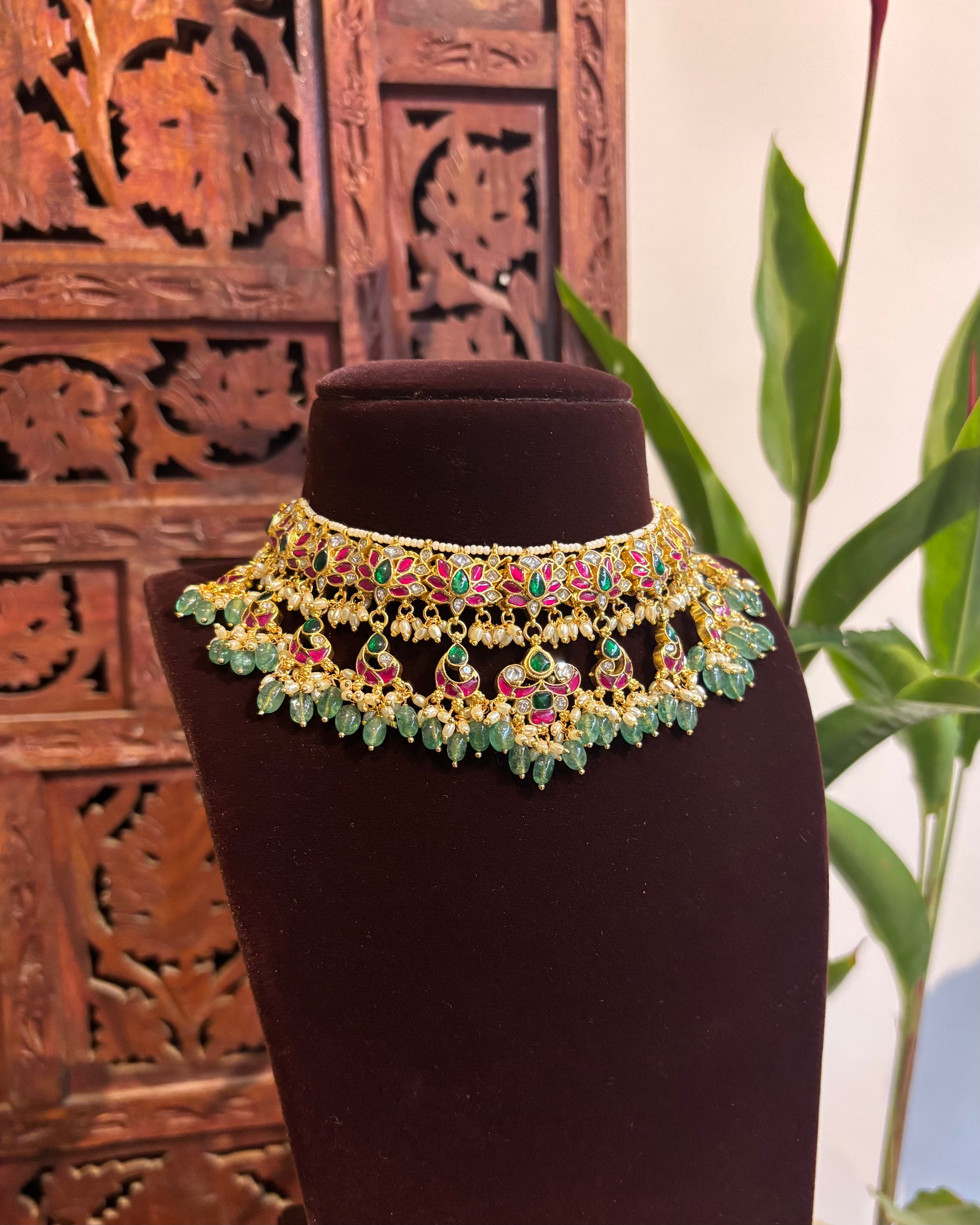 Intricate Floral Jadau Kundan Choker Necklace | NC155