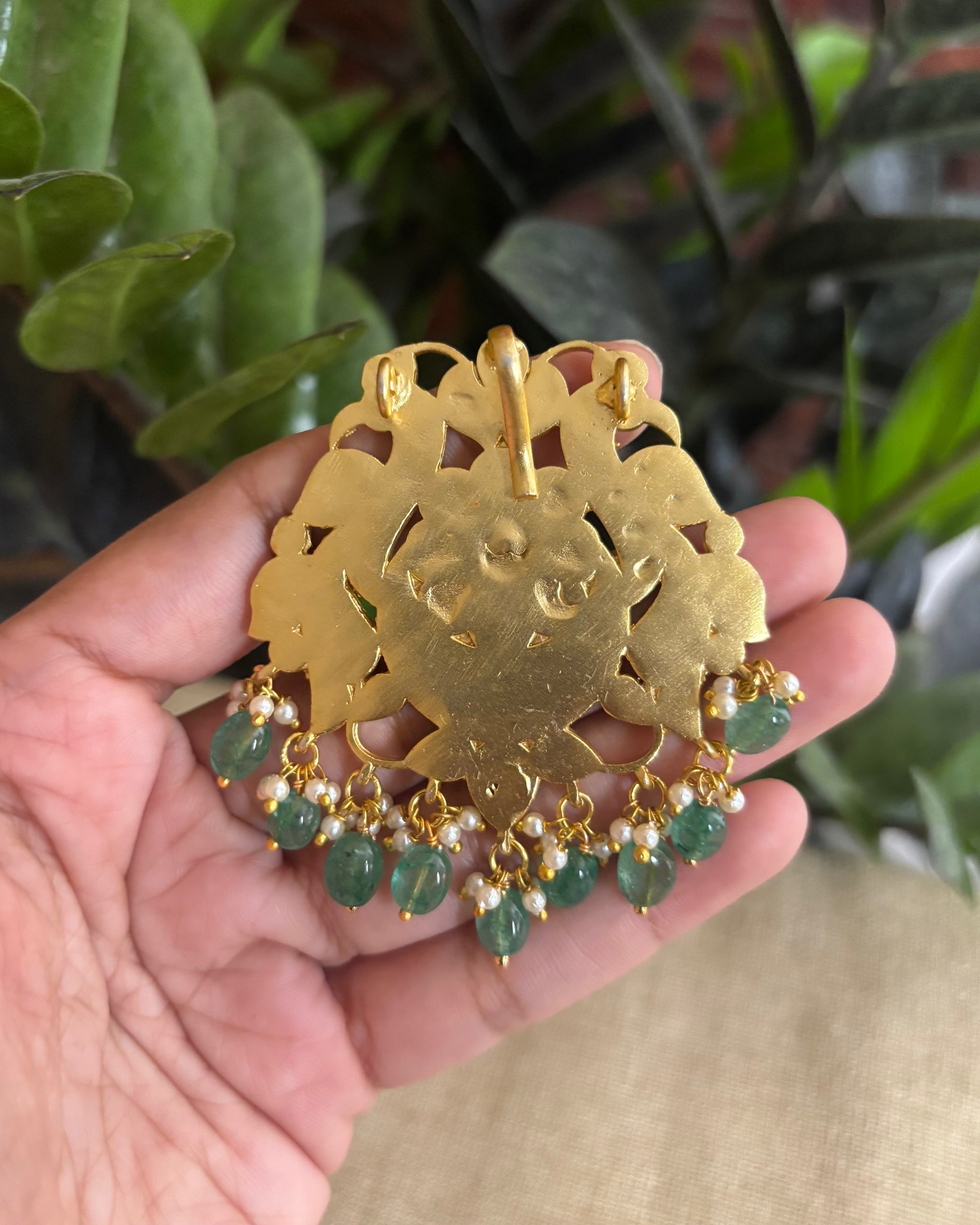 Intricate Floral Peacock Jadau Kundan Pendant | HA197