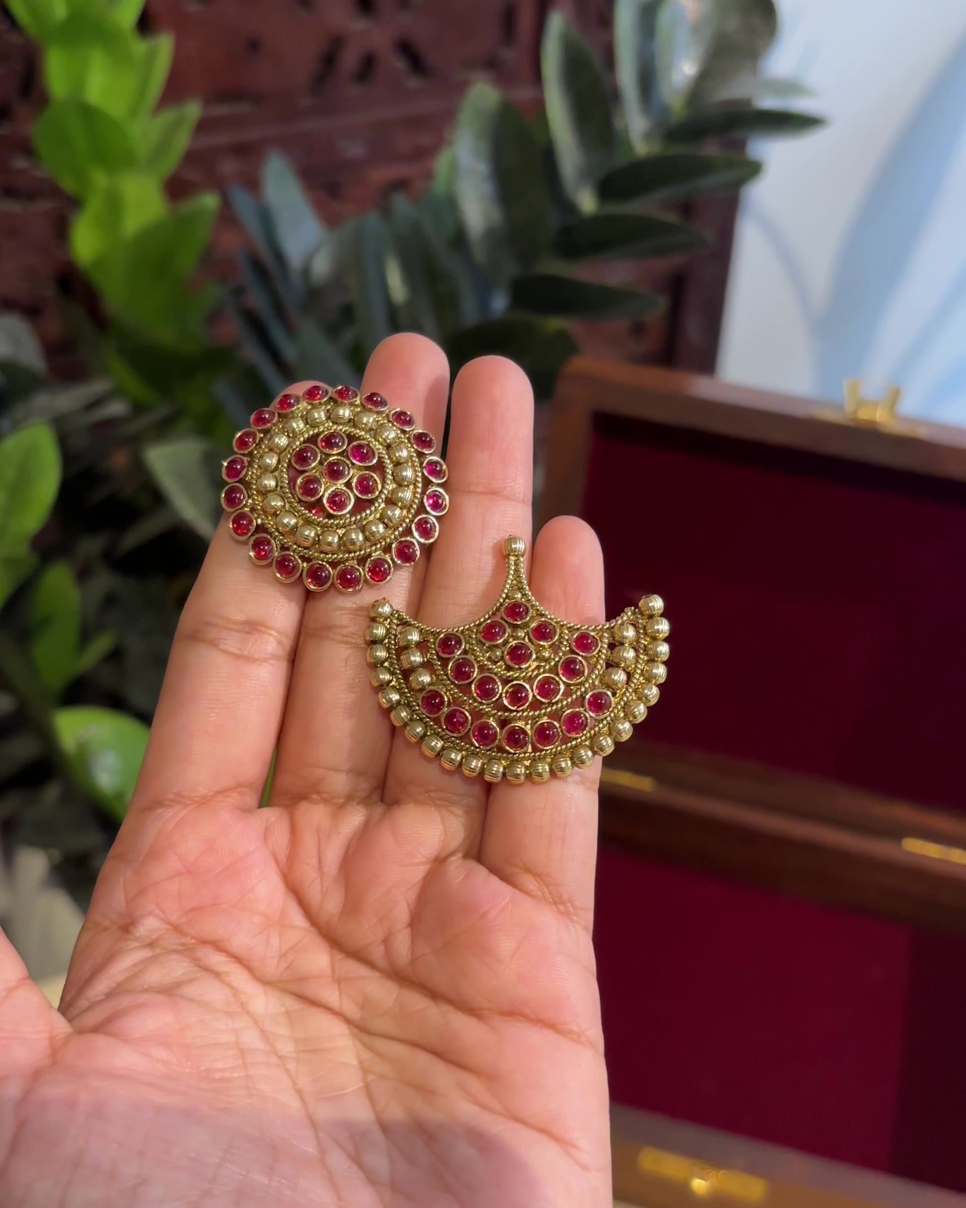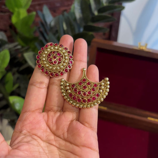 Perfect to wear on either side of a maang tikka or styled individually, these pendants add balance, beauty, and meaning to your look. Whether you’re a bride or dressing up for a special occasion, this set brings a graceful glow that feels rooted in tradition yet fresh and minimal.