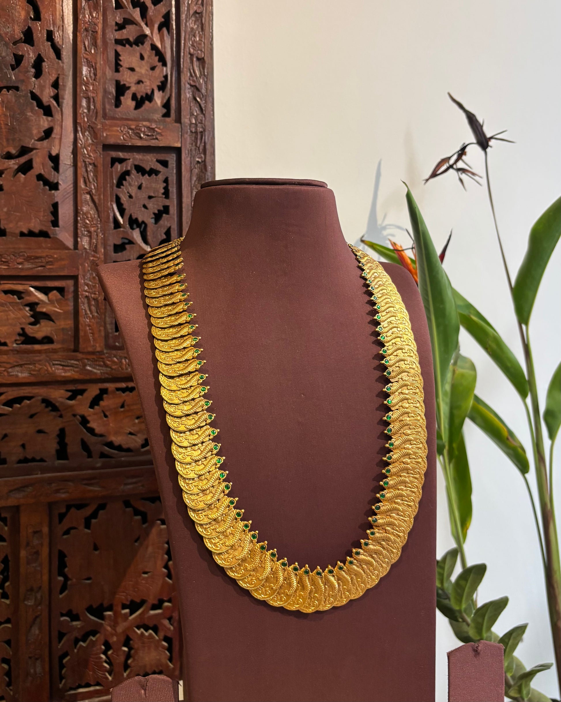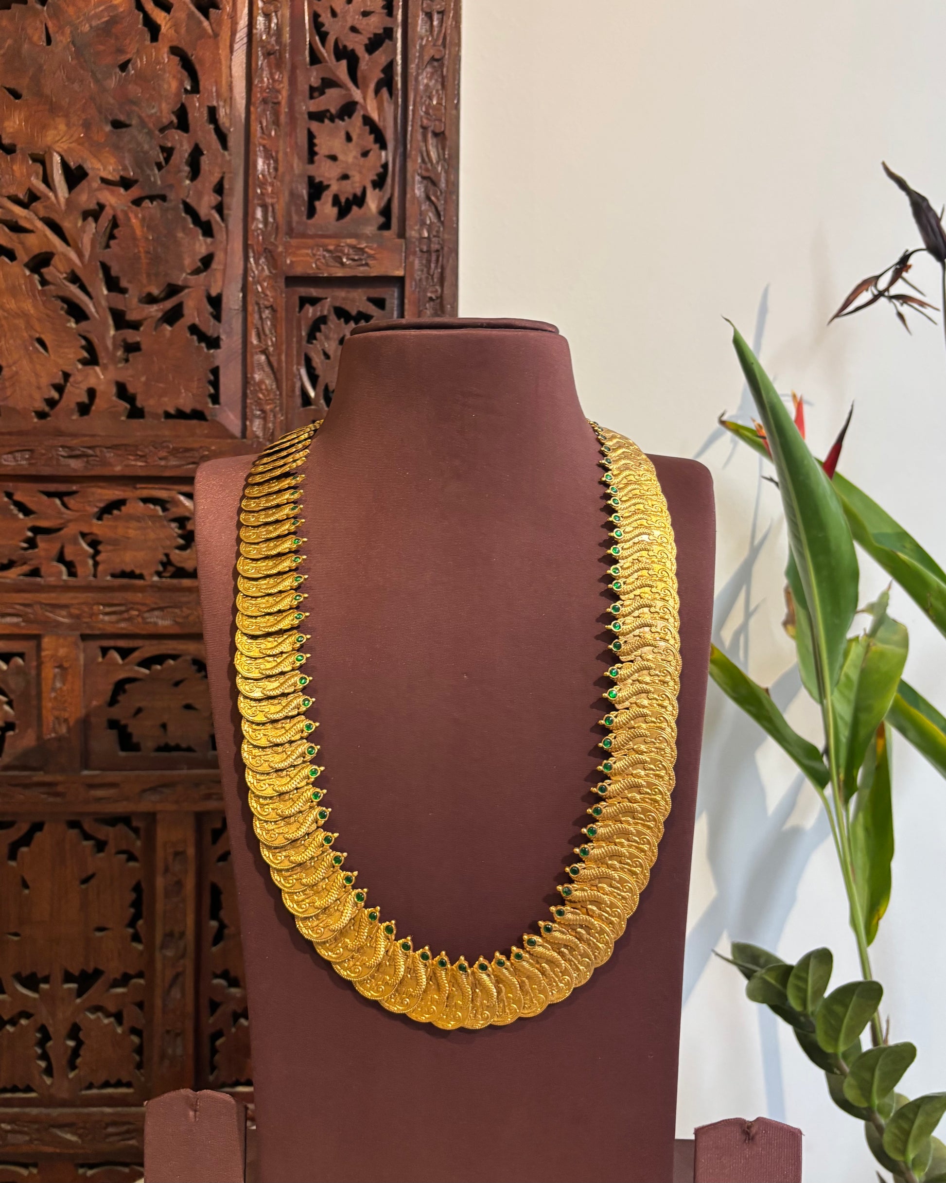 Lakshmi Antique Peacock Kaasu Haram with Kundan Detailing – Bridal Temple Jewellery | NC244