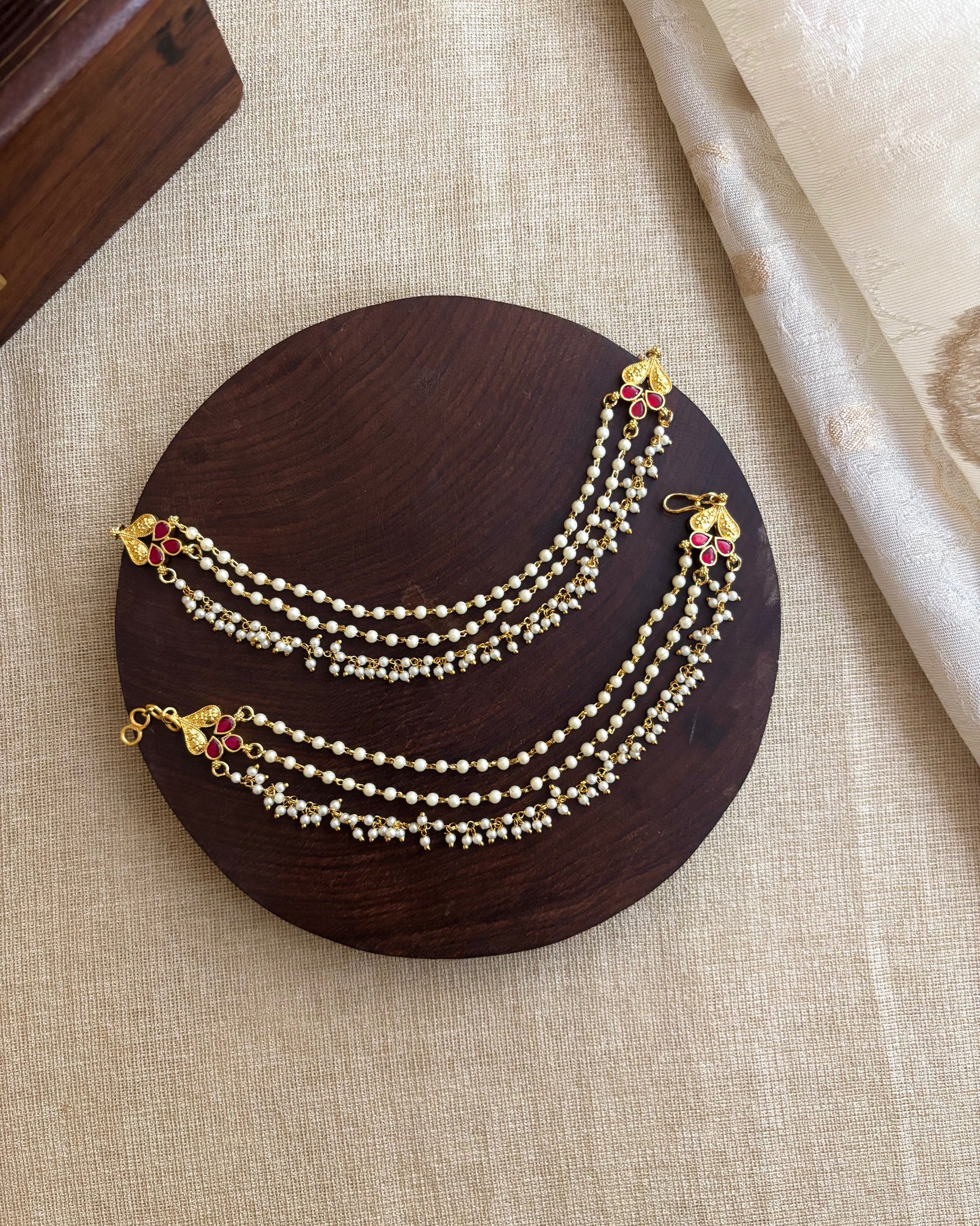 Minimal 3-Layer Pearl Kundan Ear Chain | EC091