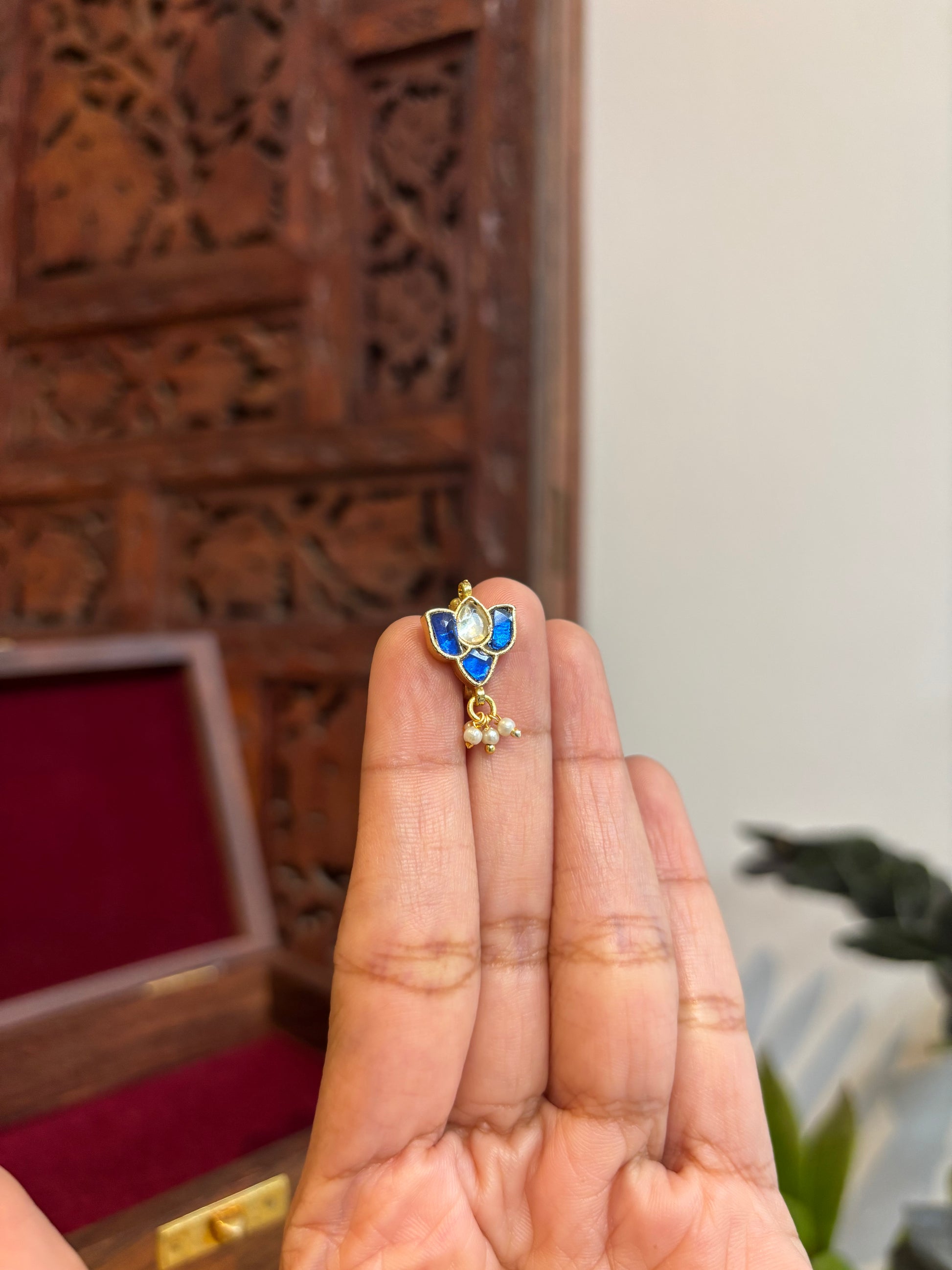 A delicate blend of tradition and charm, this nosepin is a graceful addition to your festive or bridal look. Handcrafted with precision, it features intricate work set in a subtle base that enhances its timeless appeal. Whether you're a bride looking to complete your ensemble or simply adding a touch of tradition to your style, this nosepin is the perfect understated statement. Lightweight, comfortable, and beautiful — it’s elegance in the tiniest detail.