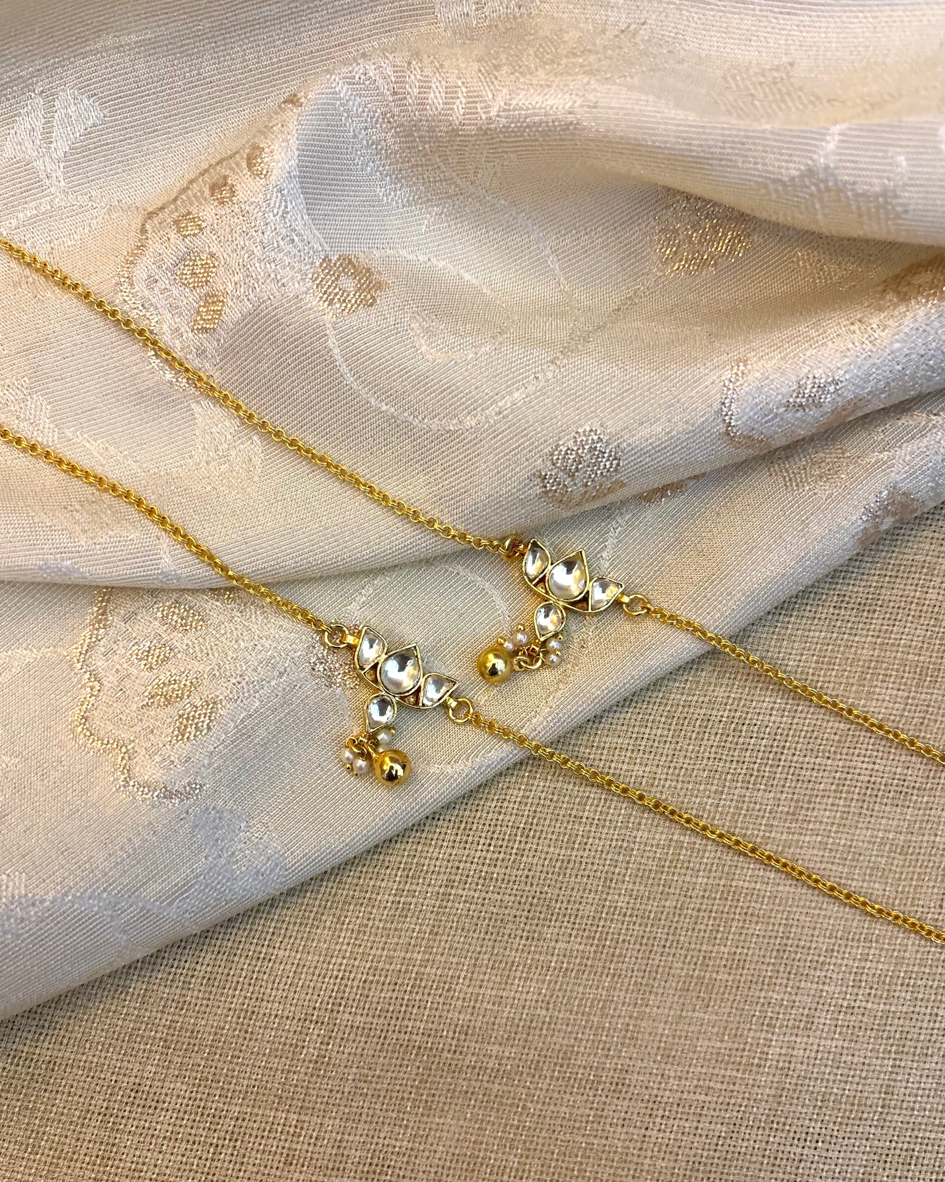 Graceful and understated, these Minimal Lotus Anklets bring together traditional artistry with a modern touch. Featuring delicate lotus motifs in a refined gold-plated finish, they are designed to add just the right amount of elegance to your steps. Lightweight and comfortable, they are perfect for everyday wear, festive occasions, or as a subtle statement with traditional outfits.