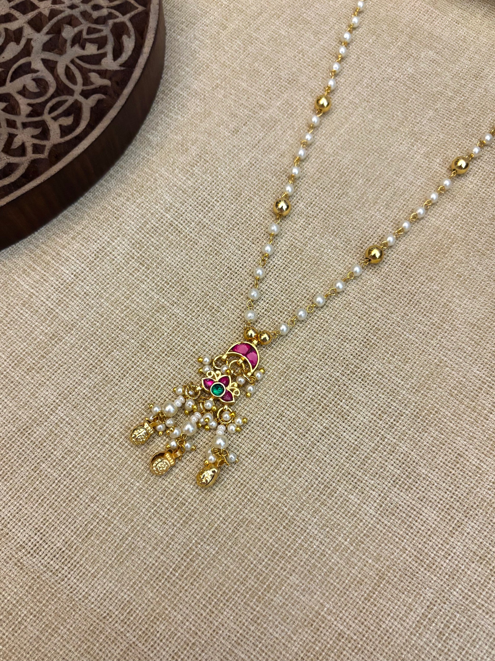 Minimal Pearl Necklace with Pachi Kundan Pendant & Matching Earrings | NC145