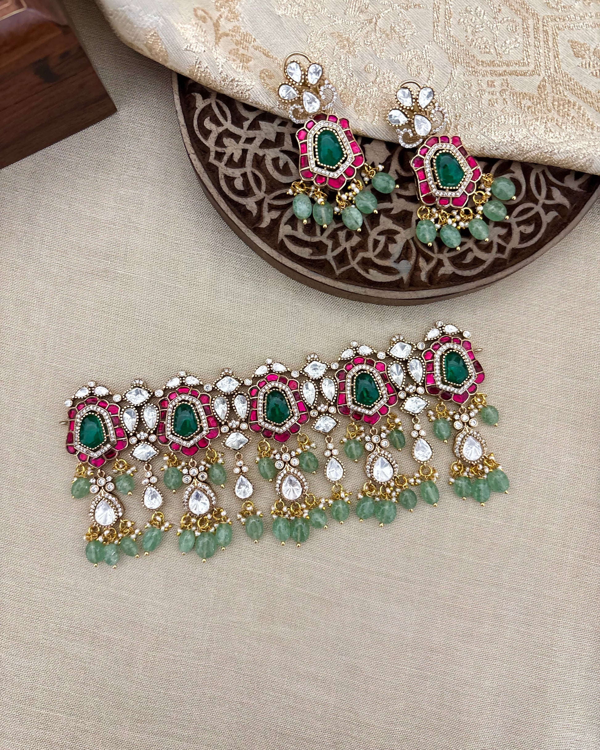 Perfect for weddings, receptions, and grand celebrations, this choker elevates any bridal ensemble with its brilliance and timeless appeal. A true heirloom-inspired piece, crafted to leave a lasting impression.