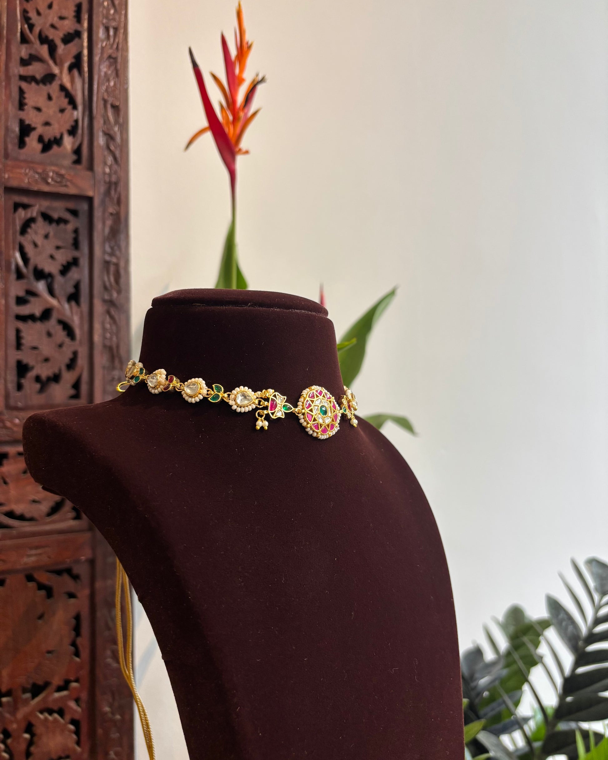 Multi-Color Floral Kundan Choker | Handmade Gold Plated | NC175
