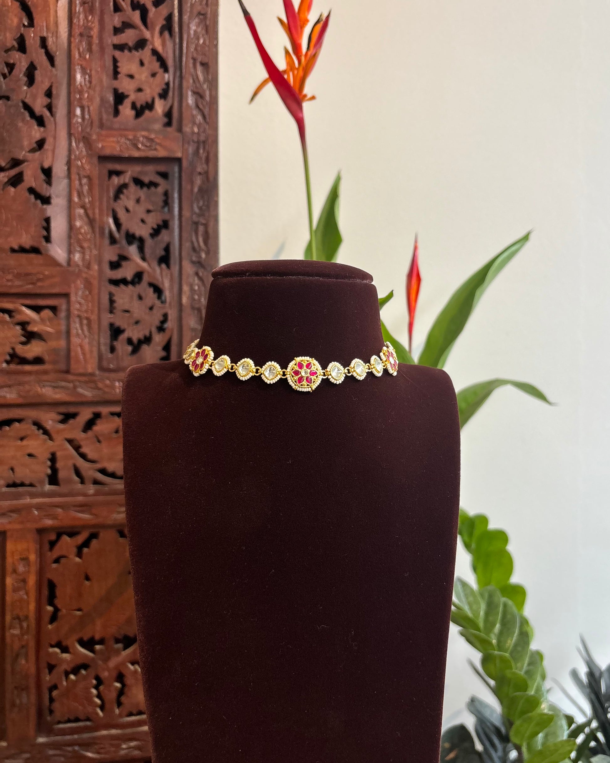 White and Pink Minimal Floral Kundan Choker | Handmade Gold Plated | NC178