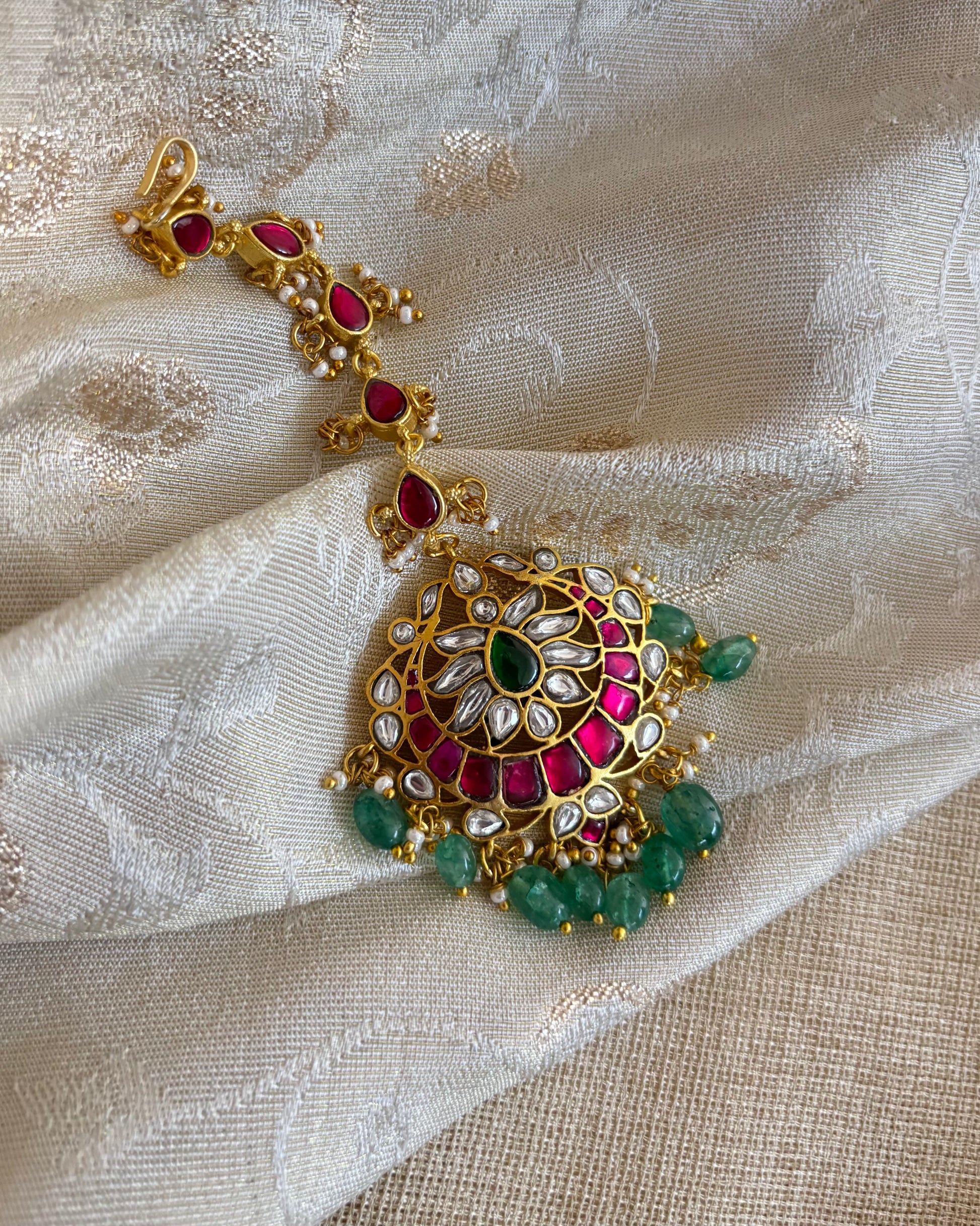 Multicolor Gold-Plated Jadau Kundan Traditional Maang Tikka | MT136