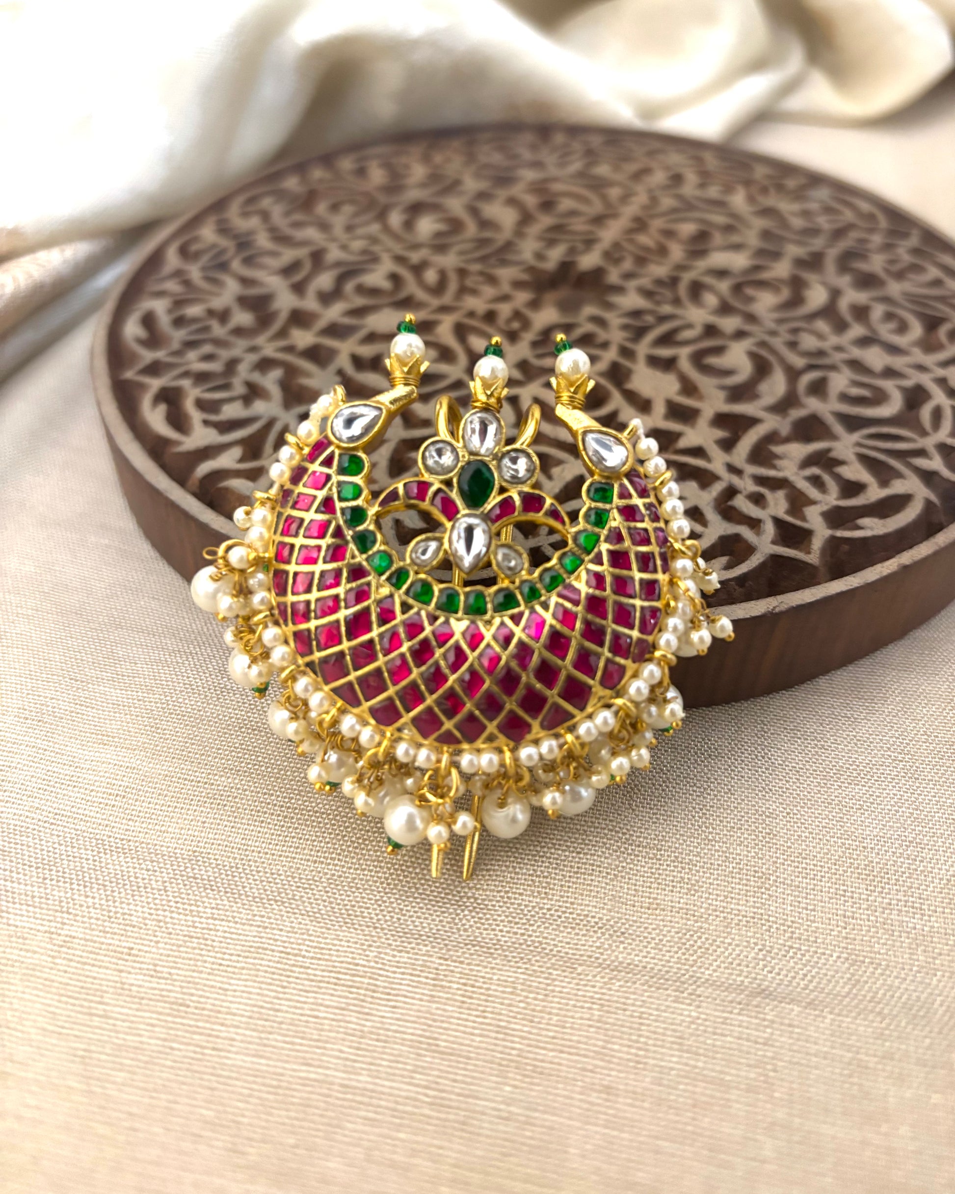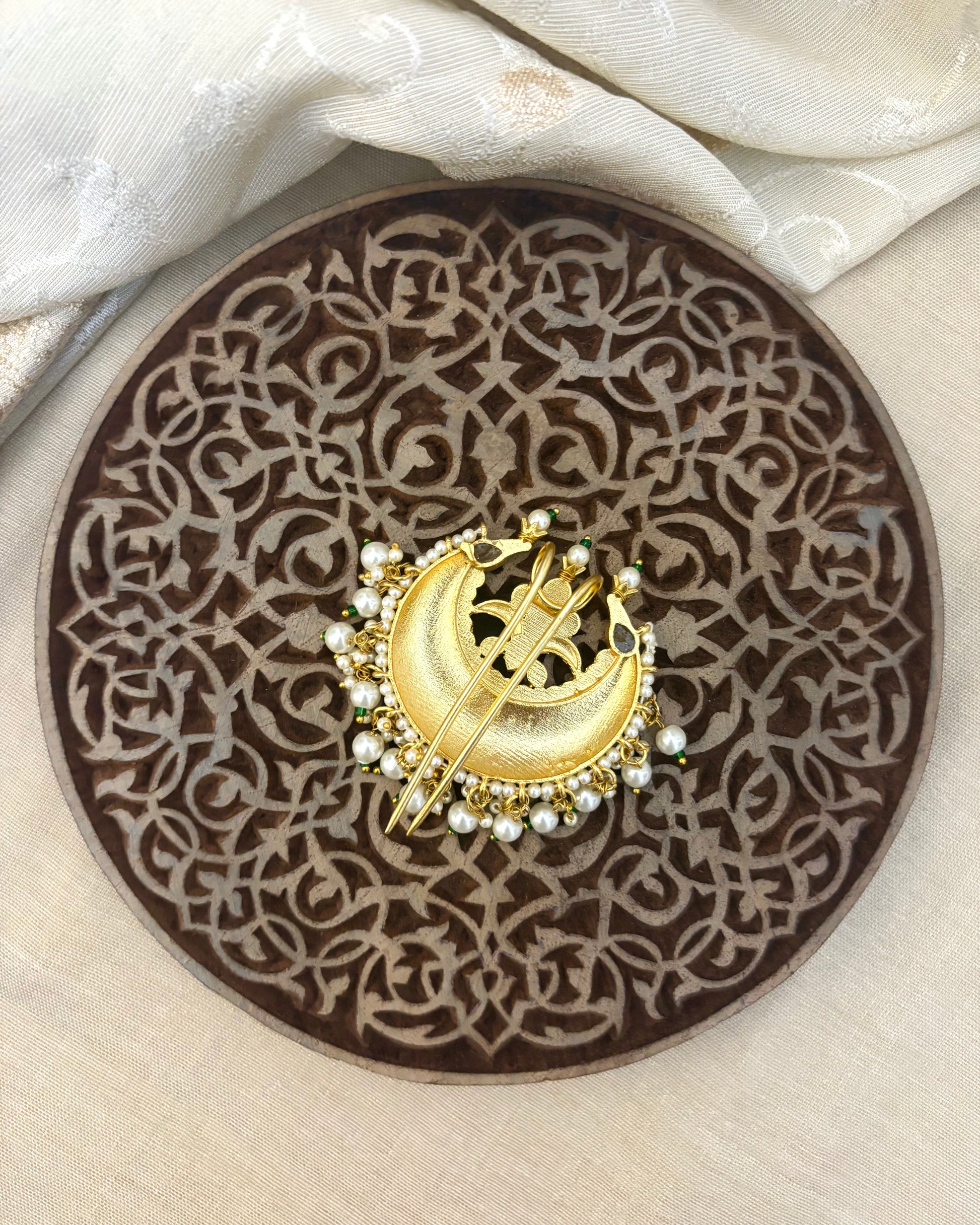 Premium Jadau Craftsmanship: Handcrafted with high-quality Kundan, and pearls, these hair embellishments ensure a timeless, regal finish.
