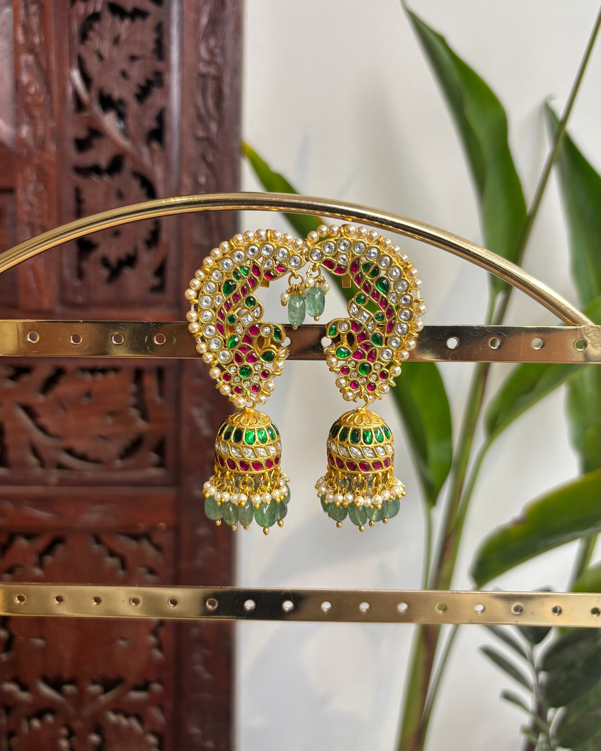 Regal Peacock Ear Cuff Jhumkas – Intricate Kundan Design | ER171