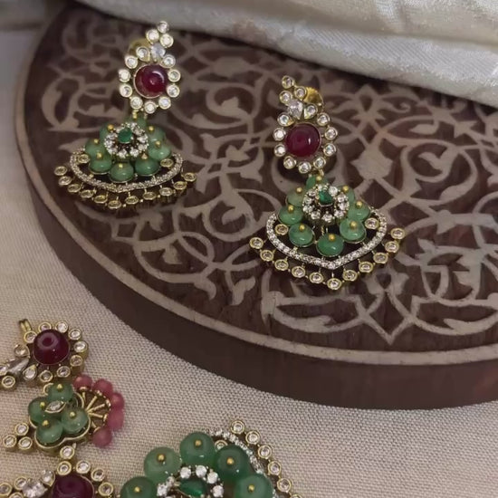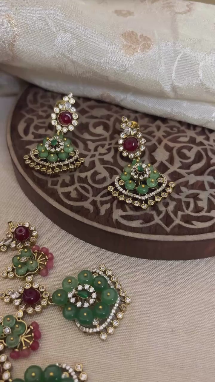 A masterpiece of craftsmanship, this Victorian-finish necklace features intricate floral detailing paired with elegant pumpkin beads, creating a perfect balance of tradition and modernity. Complete with matching earrings, this statement set is one-of-a-kind — ideal for contemporary bridal looks, haldi, mehendi, or festive occasions. Its rich design and timeless appeal make it more than just jewellery — it’s a conversation starter.