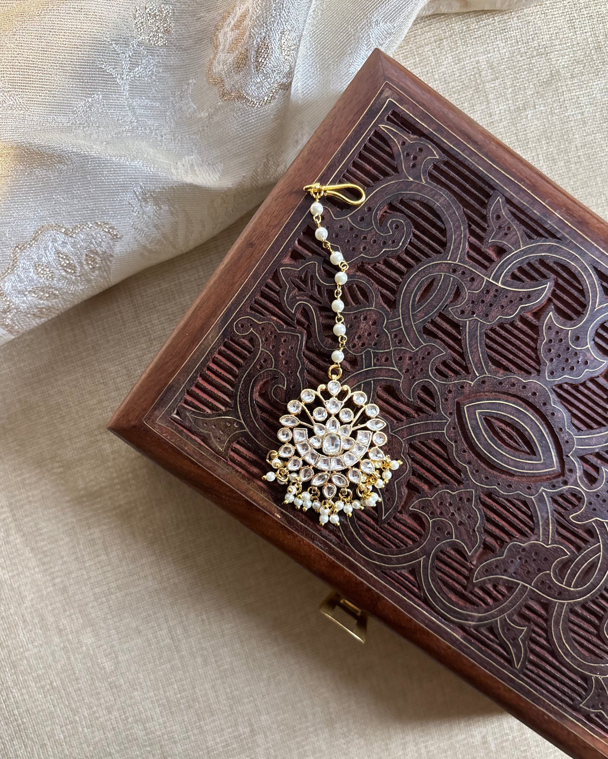 White Floral Jadau Kundan Maang Tikka | MT128